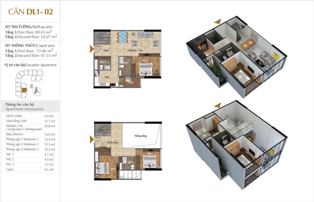 - Sản phẩm: Sky Villas ( căn hộ biệt thự trên cao)