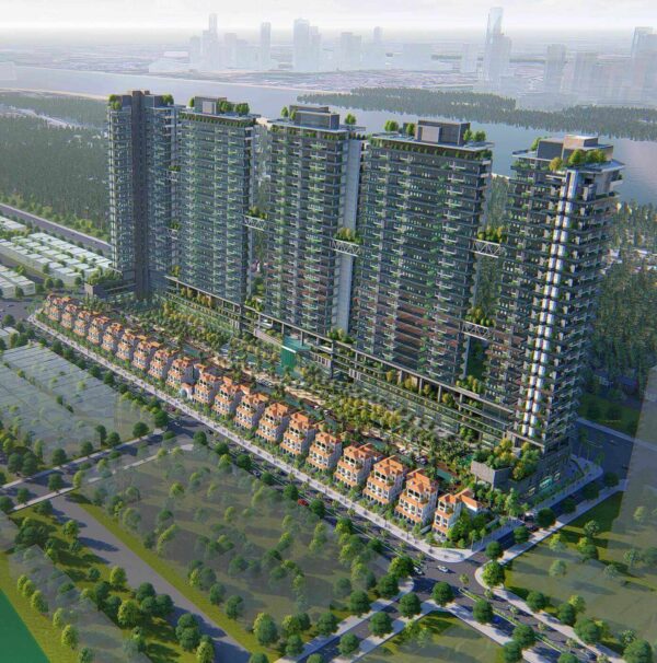 - Quy mô: 5 tòa tháp chung cư + 60 lô Biệt thự